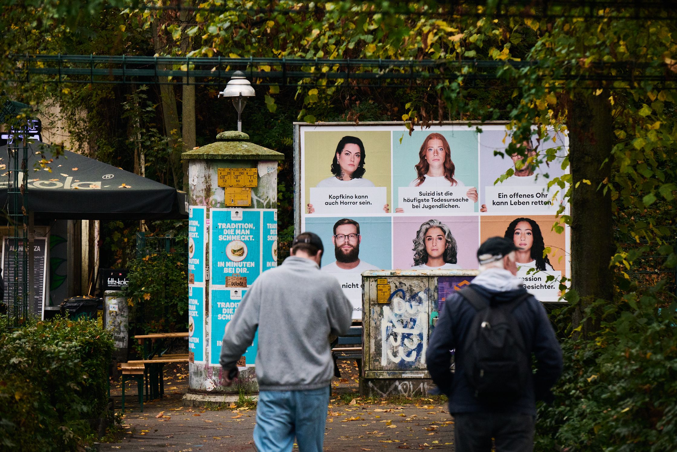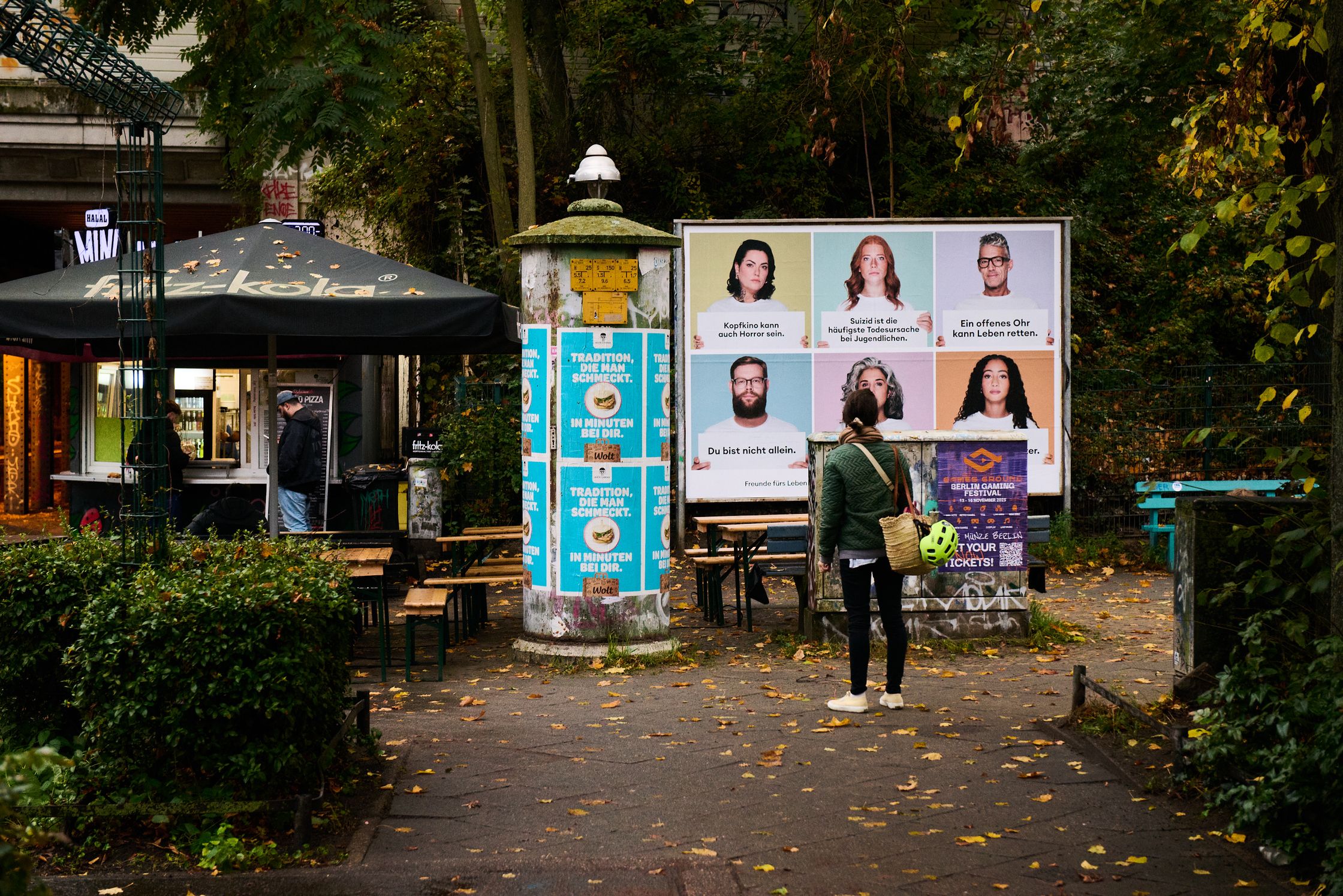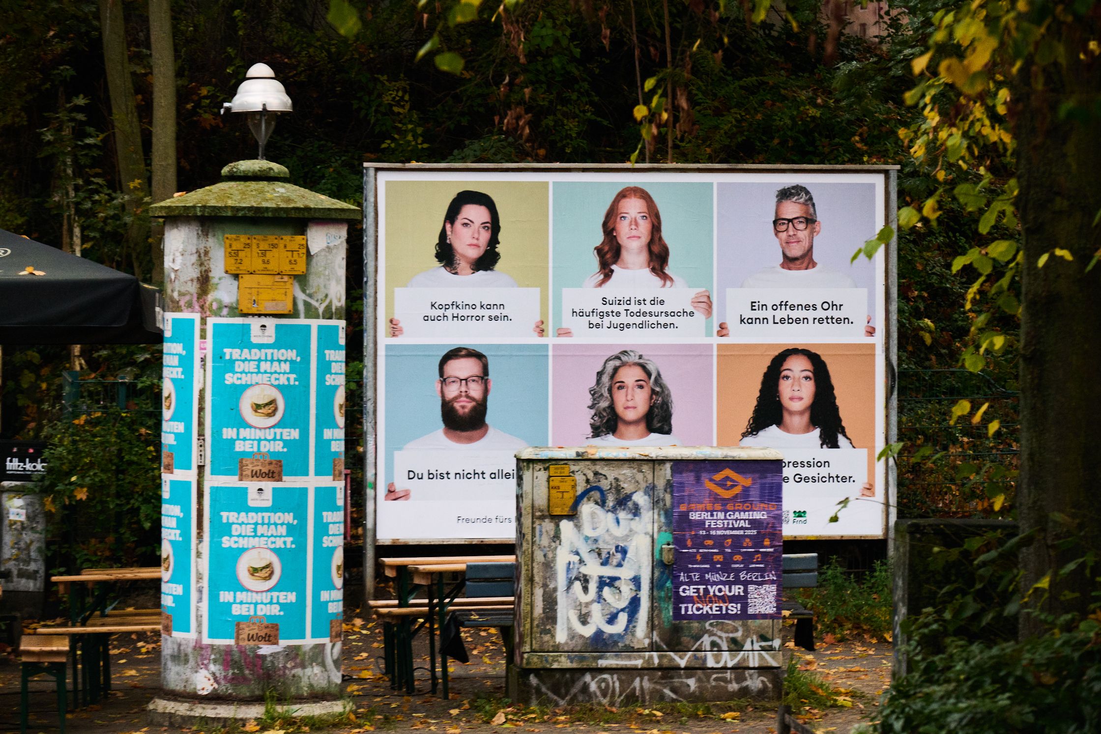 The campaign ran digitally on Instagram, TikTok, Facebook, and the association's website from October 2025, as well as prominently in Berlin's urban space: through a large-format poster and 36 digital City Light Boards in cooperation with Wall.