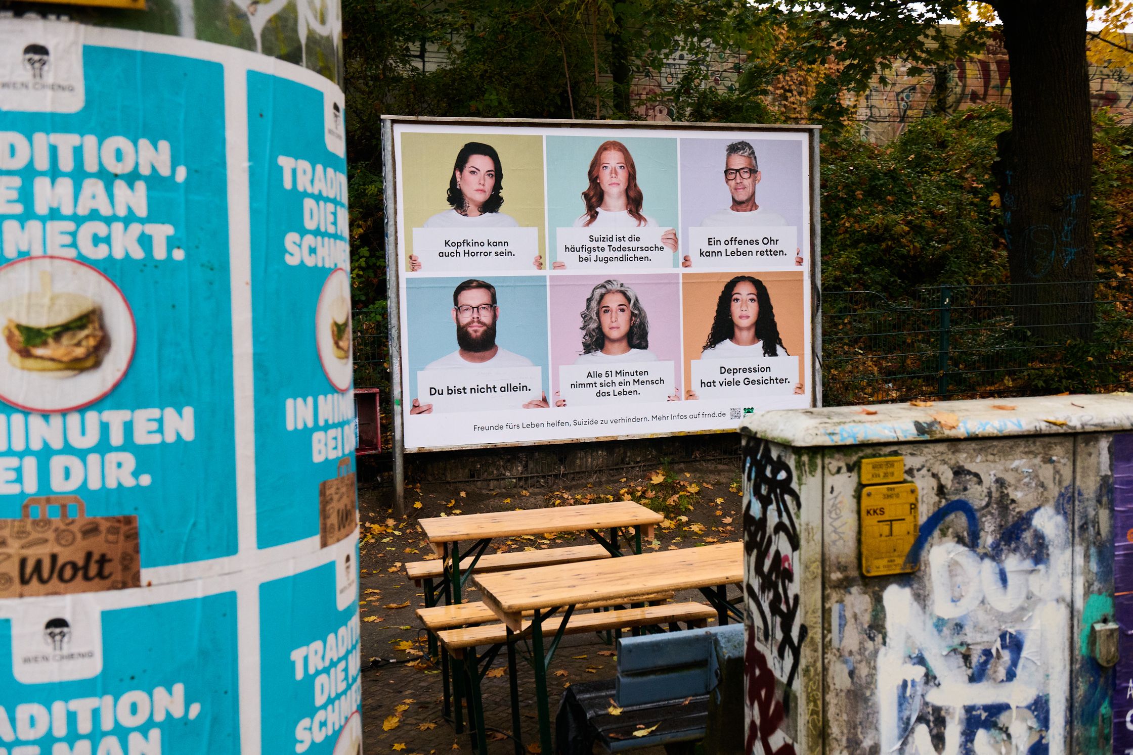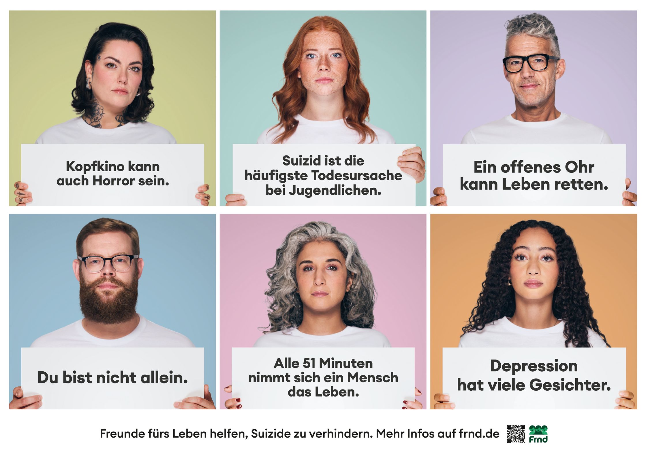 Every year, more than 10,000 people in Germany die by suicide, millions are affected by depression, and yet these issues often remain invisible in everyday life. The aim of the campaign is to destigmatize those affected, impart knowledge, and promote open discussion.