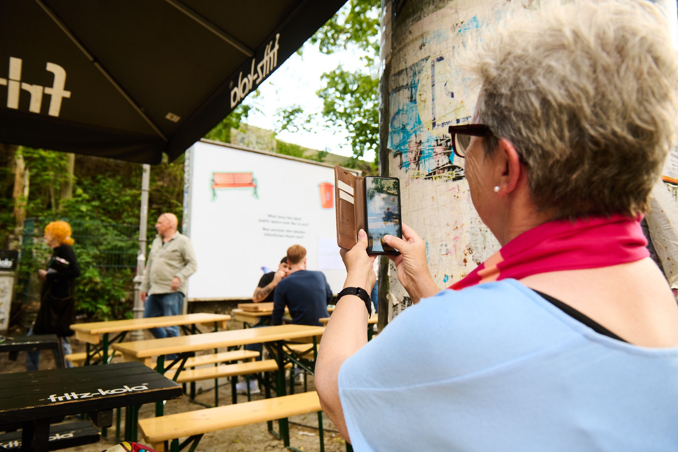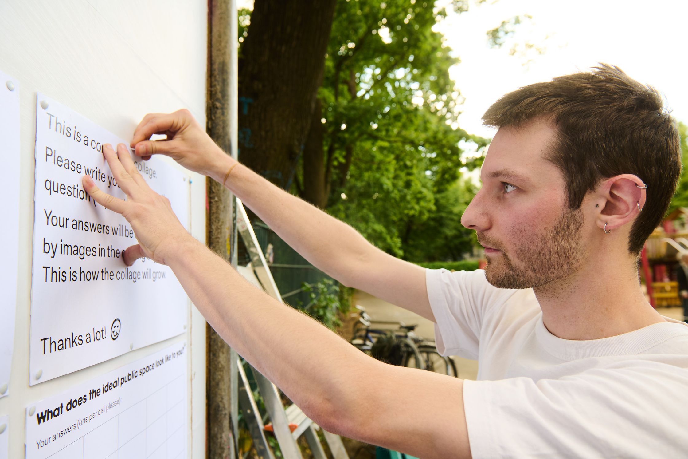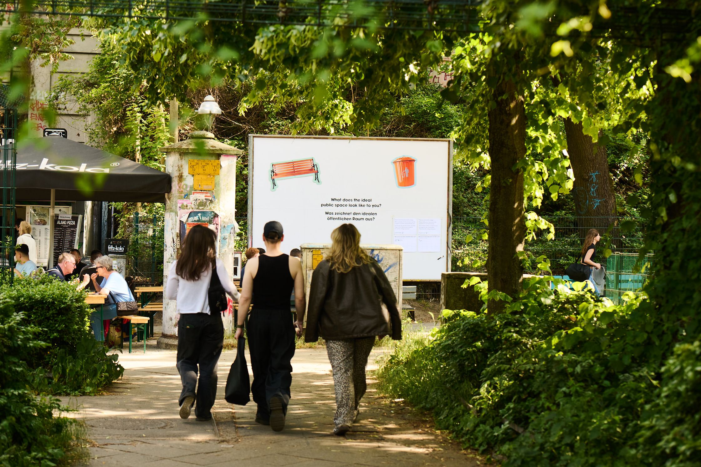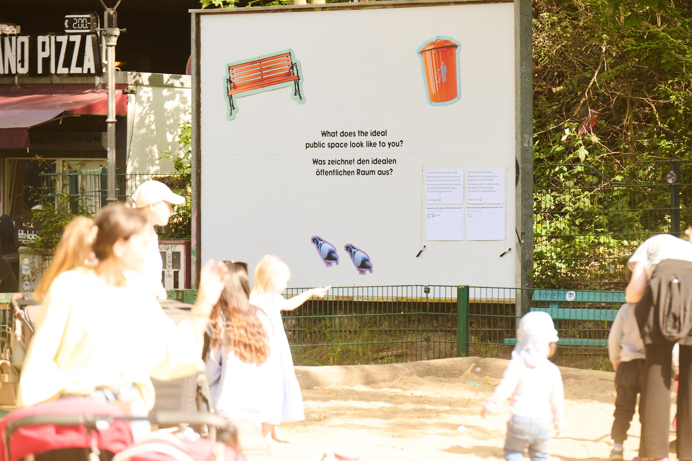 What characterises the ideal public space? To get to the bottom of this question, the billboard became a community collage for ten days. The space was provided with a list of answers and a pen and passers-by were invited to answer the question on site. Every two days, the answers were scrutinised and graphic elements were created based on them - over the course of ten days, a collective vision of the “ideal” public space was created.