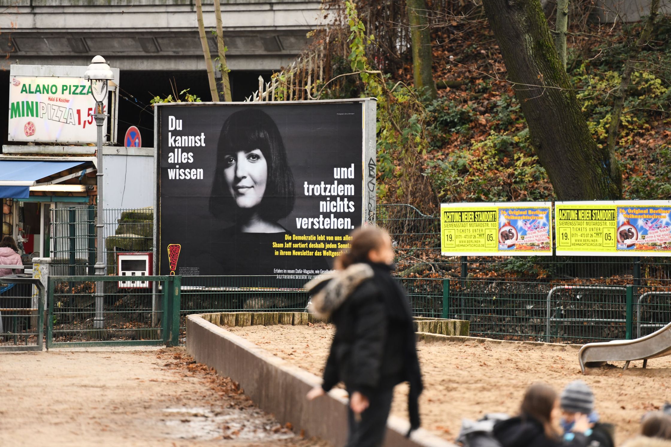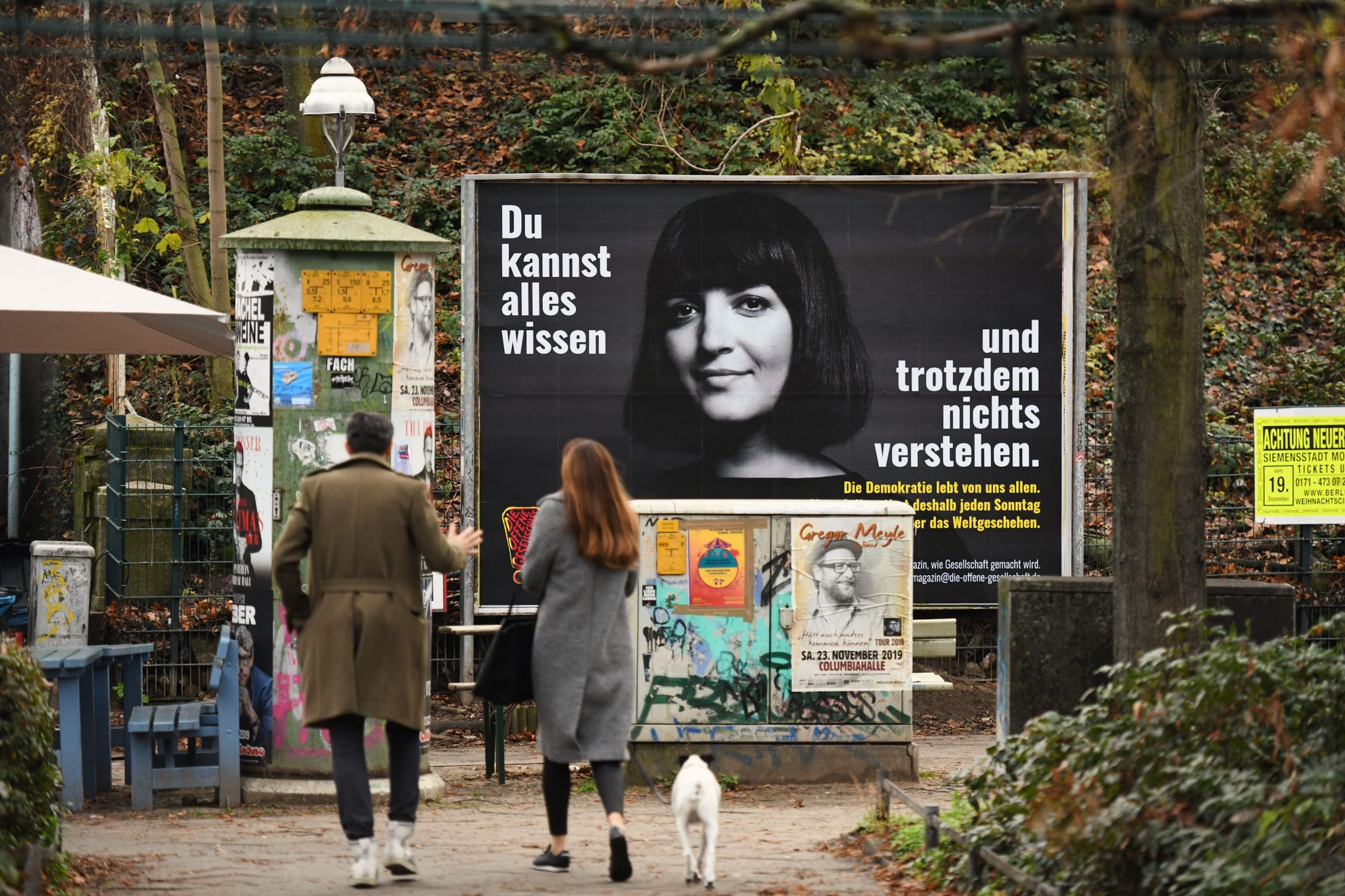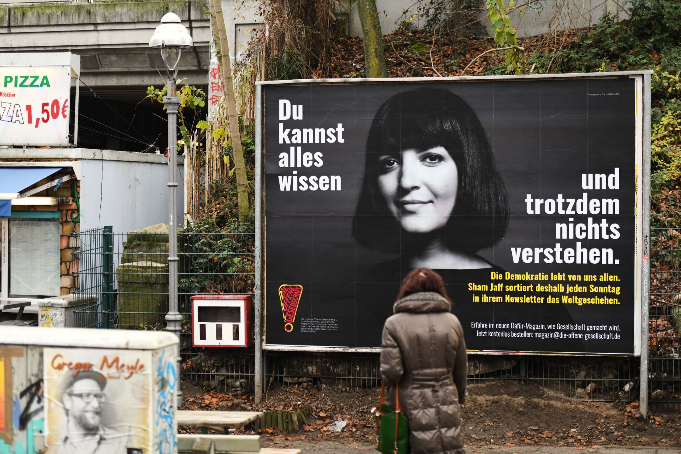 The daily flood of news is almost unbearable for many people. Sham Jaff is trying to get a grip on it. With her newsletter "What happened last week," she sorts through world events once a week. The text on the poster reads: "You can know everything and still understand nothing." "The Open Society" is an initiative that wants to create new spaces for ideas and concrete utopias. As a #forthis platform, it brings together people who take a radically constructive stance against the political lack of ideas and courage and who are no longer interested in the escalating social discourse.